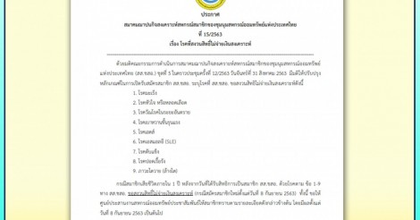 และแจ้งเงื่อนไขงดจ่ายเงินสงเคราะห์กรณีสมาชิกเสียชีวิตภายใน 1 ปี หลังจากที่ได้รับสิทธิการเป็นสมาชิก สส.ชสอ. ด้วยโรคตามที่สมาคมประกาศ