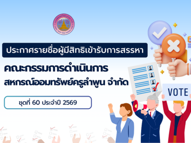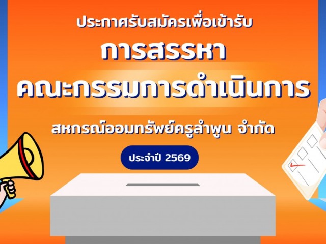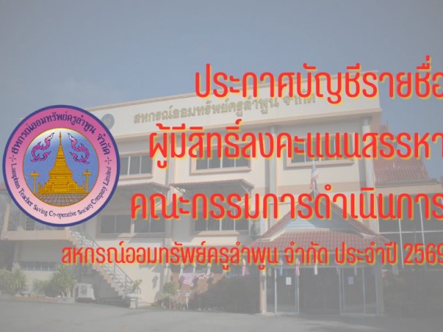 ตามประกาศของสหกรณ์ออมทรัพย์ครูลำพูน จำกัด เรื่อง การสรรหาคณะกรรมการดำเนินการ สหกรณ์ออมทรัพย์ครูลำ...