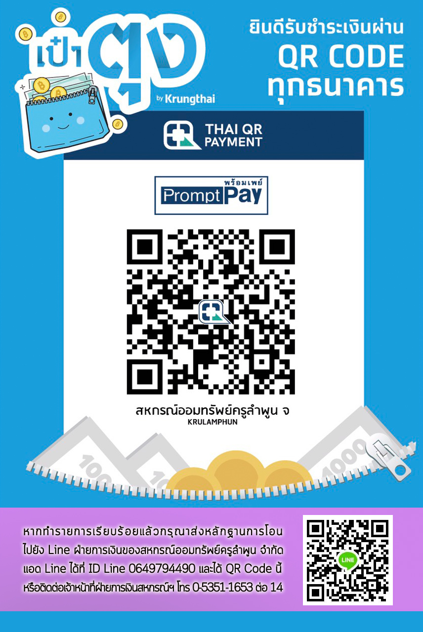 บริการรับชำระเงินของสหกรณ์ออมทรัพย์ครูลำพูน จำกัด ผ่าน QR CODE
