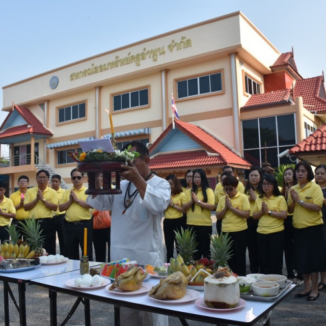 คณะกรรมการดำเนินการ คณะทำงาน ผู้ตรวจสอบกิจการ คณะเจ้าหน้าที่ จัดพิธีบวงสรวงศาลพระภูมิเจ้าหน้าที่ ณ สำนักงานสหกรณ์ออมทรัพย์ครูลำพูน จำกัด วันจันทร์ ที่ 29 เมษายน 2562 ซึ่งจัดทำขึ้นเป็นประจำทุกปี