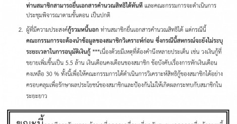 สหกรณ์ขอแจ้งสมาชิกแยกเป็น 2 ประเด็นดังนี้