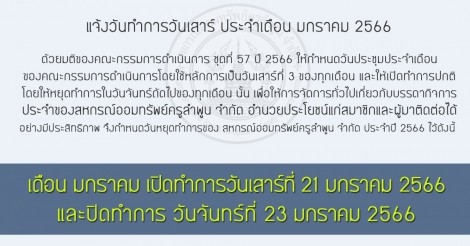 แจ้งวันทำการวันเสาร์เดือนมกราคม 2566